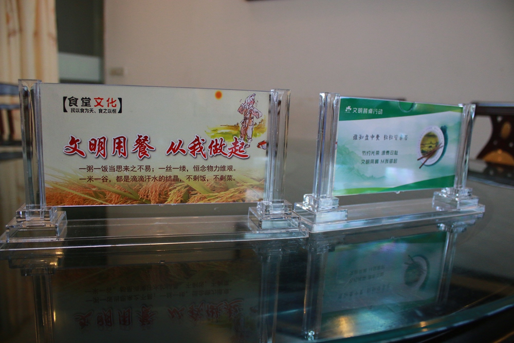 三、主动参与。食堂餐饮服务要做到行业规范、食品安全、诚信经营、优质服务。在餐桌上摆放“文明用餐,节俭惜福”温馨提示牌,引导干警适量打菜。
